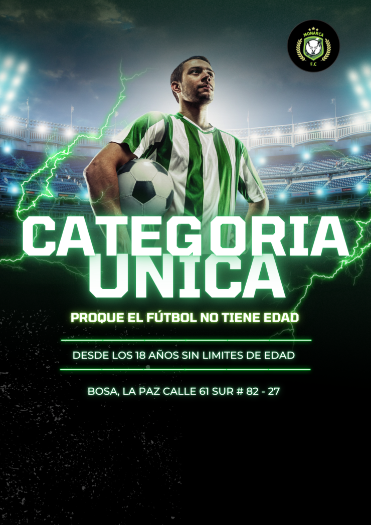 ¡Monarca FC continúa creciendo y consolidándose como un proyecto deportivo integral.Nos complace anunciar oficialmente la apertura de nuestra Categoria única para jugadores desde los 18 años adelante!